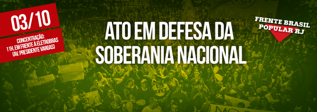 Decidiu como prioridade a construção, organização e realização, no dia 03/10, do Ato Nacional em Defesa da Soberania Nacional. Compreendemos que defender a soberania é defender as nossas riquezas, nosso patrimônio, nossas empresas públicas e nossas riquezas naturais. Defender a soberania é lutar por nossos direitos, trabalho, terra, educação, saúde, moradia e liberdade.